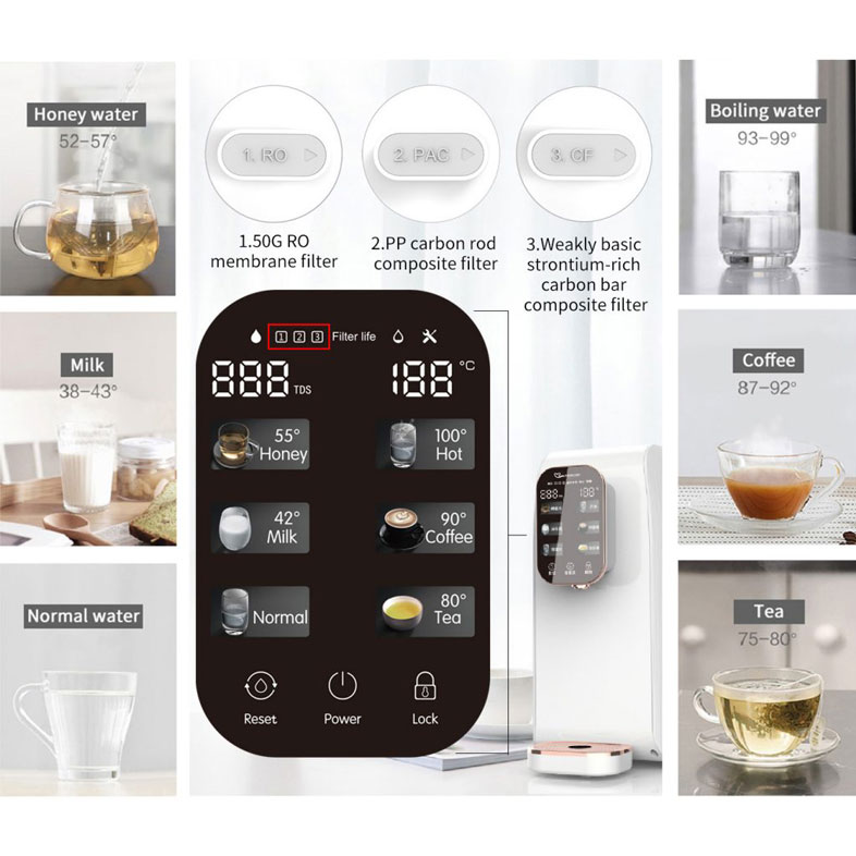 یکی از بزرگ ترین مزایای دستگاه های تصفیه آب شرکت هون لند، این است که این دستگاه ها می توانند در مدت زمان ۳ ثانیه پس از تصفیه، آب را با دماهای مختلف، از ۲۵ تا ۱۰۰ درجه سانتیگراد به شما تحویل دهند. بنابراین با خرید دستگاه تصفیه آب از هون لند، آب گرم و سرد تصفیه شده را با هم خواهید داشت.