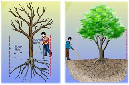 - استفاده از کوددهی به روش چالکود به جذب بهتر آب کمک کرده و ریشه درختان به راحتی میتوانند رطوبت را جذب کنند.