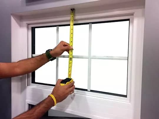 اندازه گیری بین محورها در سه نقطه : بالا، وسط و پایین پنجره برای اندازه گیری عرض پنجره موجود، متر اندازه گیری را در سمت چپ پنجره تا سمت راست خود قرار دهید. اندازه گیری را در بالا، وسط و پایین انجام دهید و از فاصله کوتاه‌تر به عنوان اندازه گیری واقعی خود استفاده کنید.