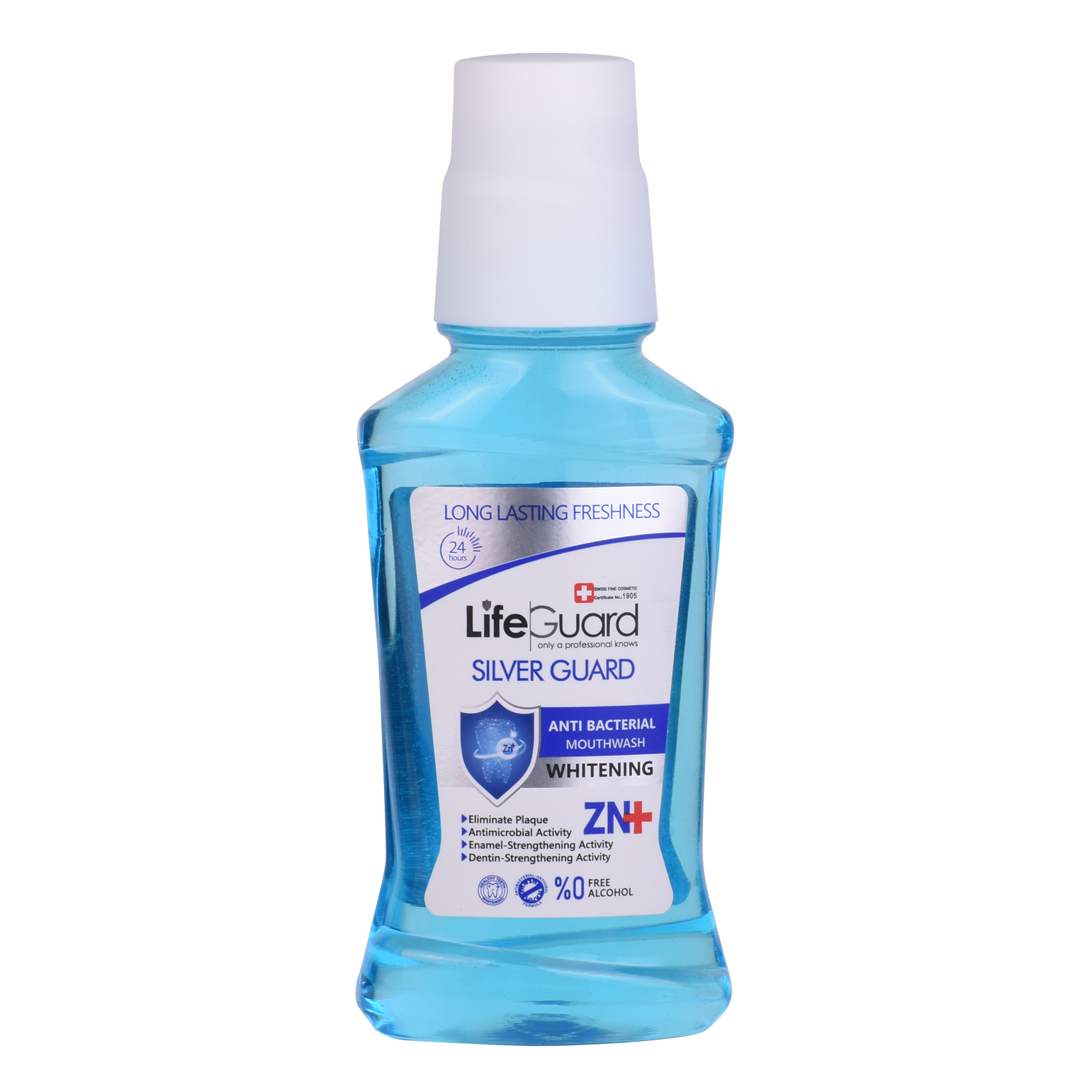 دهانشویه سفید کننده برای بزرگسالانگارد نقره ای) برند لایف گاردبه لطف استفاده از مواد موثره مانند روی و CPC (کلرید استیل پیریدینیوم) خواص ارزشمند دیگری را برای سلامت دهان و دندان شما به ارمغان می آورد که عبارتند از: